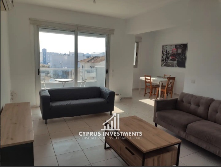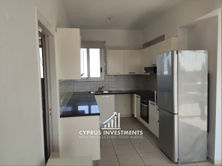 Two-bedroom apartment in Agios Dometios for rent, the property is Fully furnished and consists of a spacious living area combined with a fully equipped kitchen, a lovely covered veranda, two bedrooms and two bathrooms.