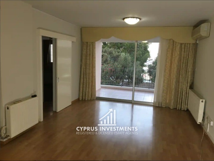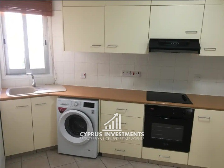 For rent extremely quiet 87 sq. m two-bedroom apartment on the first floor on a hill in Platy Aglantzia with an excellent view near the University of Cyprus at Rigenis str 39. It has two covered parking places, a covered 11 sq.m veranda, 4 new inverter A/C in all areas, a separate kitchen with a new refrigerator and washing machine, LED lights, and a lift. Price €650 plus common expenses €30.