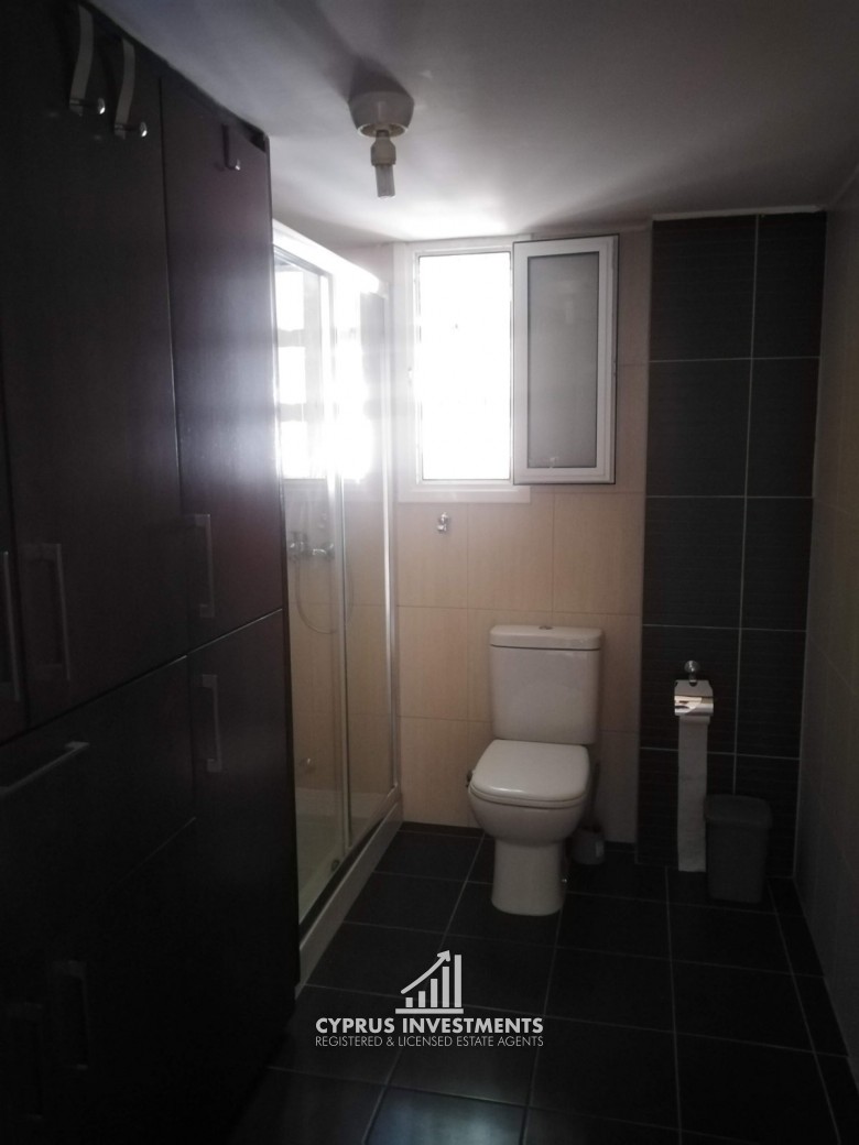 Spacious two-bedroom apartment in Palouriotissa for rent, the property has an internal area of 130m2, two bedrooms two bathrooms a separated kitchen, and parking space.