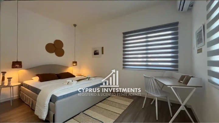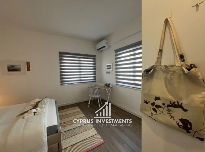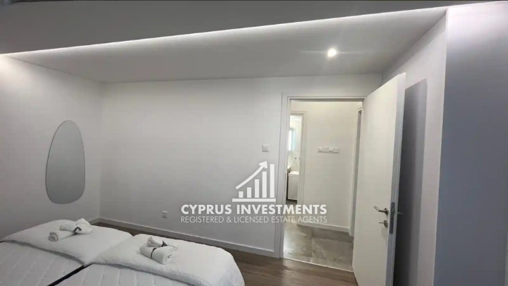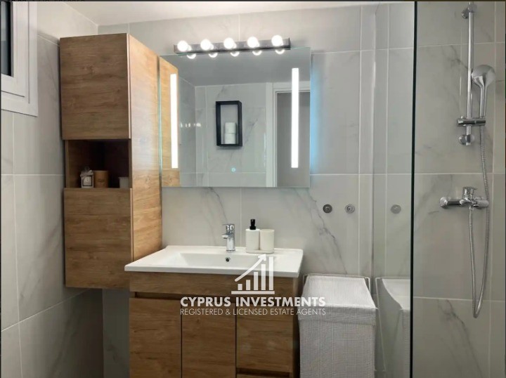A beautiful 2 Bdr apartment in a quiet location close to all amenities, universities, and walking distance to Prodromos Park, the American Academy, the Russian Embassy school, and the center of Nicosia. The fully renovated flat is fitted with new AC units in all rooms, a new open plan fully fitted kitchen, walk-in showers, en-suite bathroom, new quality floors, wardrobes, interior doors and double windows, and a certified security door. The interior is 96m2 and has 6m2 covered veranda, 2 spacious bedrooms, 2 shower rooms and an extra washroom/storage with provision for w/M and dryer, as well as extra overhead storage space.
