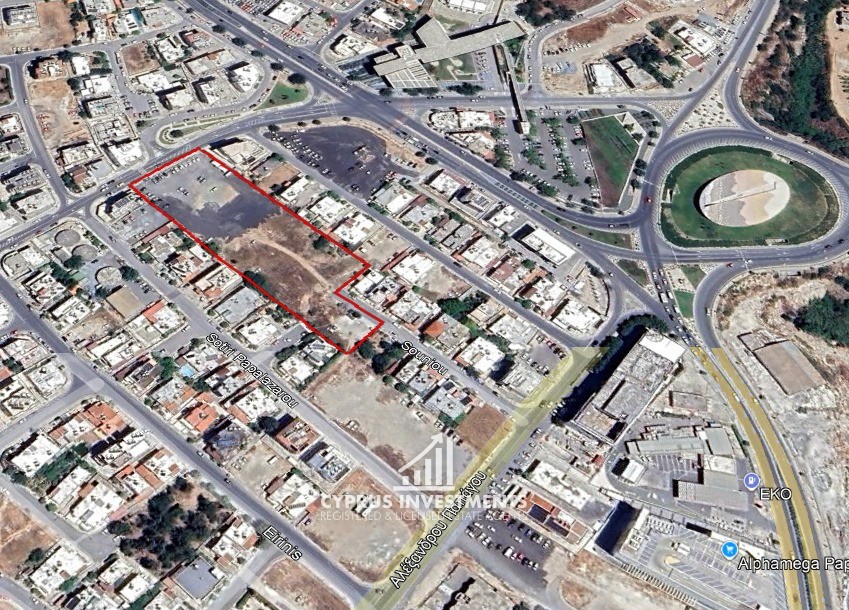 Located in the heart of Paphos, this prime plot offers a mix of residential (Κα5 - 84%) and commercial (Εβ5 - 16%) zoning. The residential section allows for a building density of 1.0, covering factor of 0.5, and permits up to 3 floors with a maximum height of 13.5 meters. The commercial section boasts a building density of 1.2, maintaining the same covering factor, floors, and height limits. Ideal for a mixed-use development combining residential living and commercial business opportunities in a central and highly desirable location.( can built up to 8 floors.)