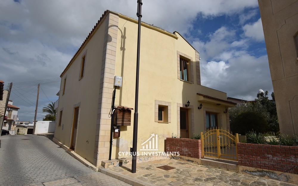 The property has an area of 185sqm and comprises of an open plan dining/living room and kitchen, a guest toilet and two bedrooms (one of which is en-suite) on the ground floor. On the first floor there is a small living room, two bedrooms, a bathroom and an uncovered balcony. The house enjoys the use of a yard, a storage room, an uncovered parking space. Double glazed windows, oil boiler heating and split units are installed.