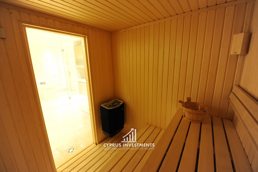 Inside, discover modern and generously sized bedrooms, complemented by luxurious bathrooms that include both showers and bathtubs, with the added indulgence of an indoor whirlpool and sauna. The open kitchen, uniquely designed, is seamlessly connected to the dining and living areas.