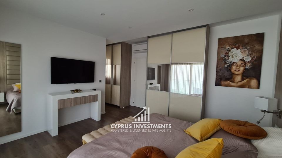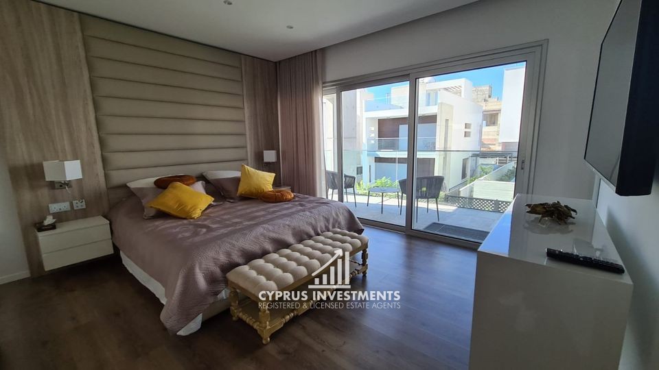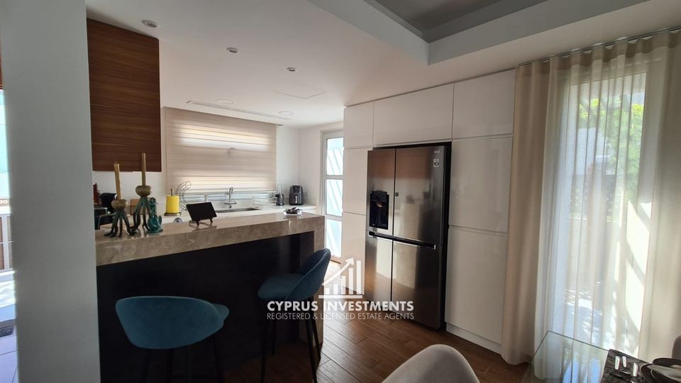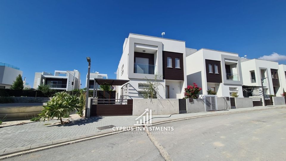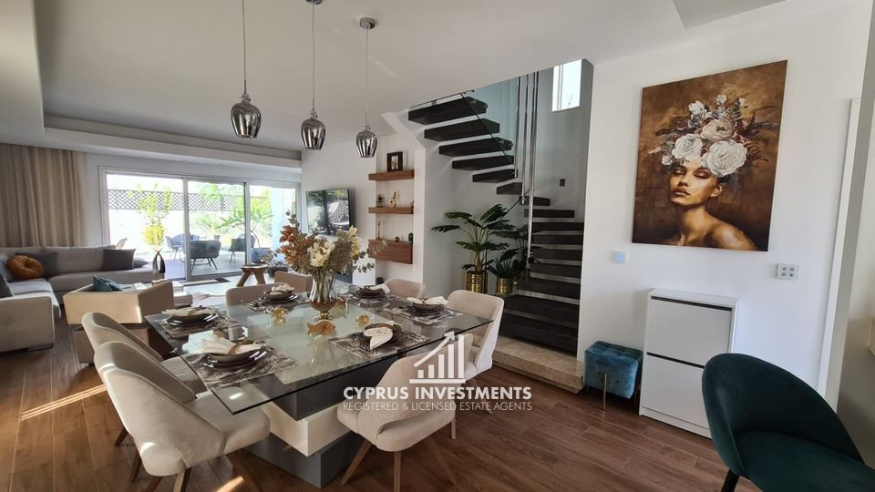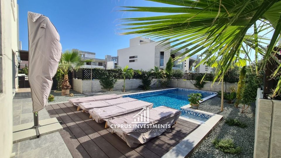 Amazing modern villa that exudes elegance and sophistication. Nestled within a beautiful garden area adorned with trees and lush greenery, this property offers a serene and tranquil environment. The centerpiece of the outdoor space is the inviting swimming pool.
