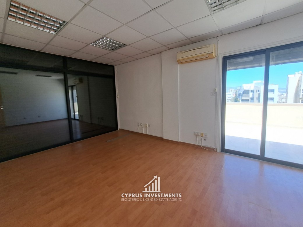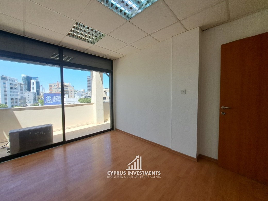 Office Space in Nicosi's City Centre For Rent, the office has an internal area of 70m2 and a big uncovered veranda of 16m2.