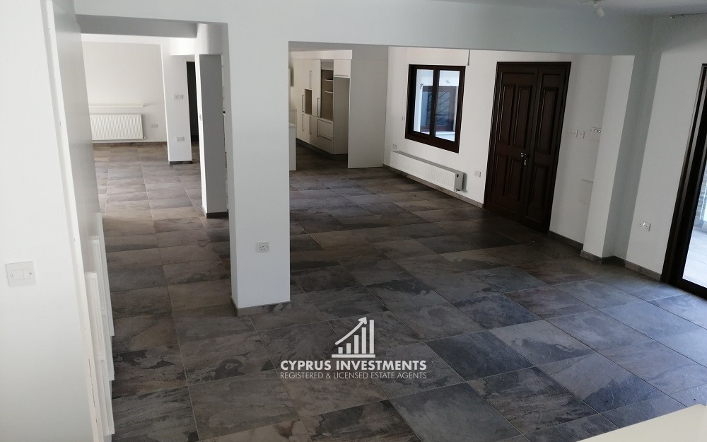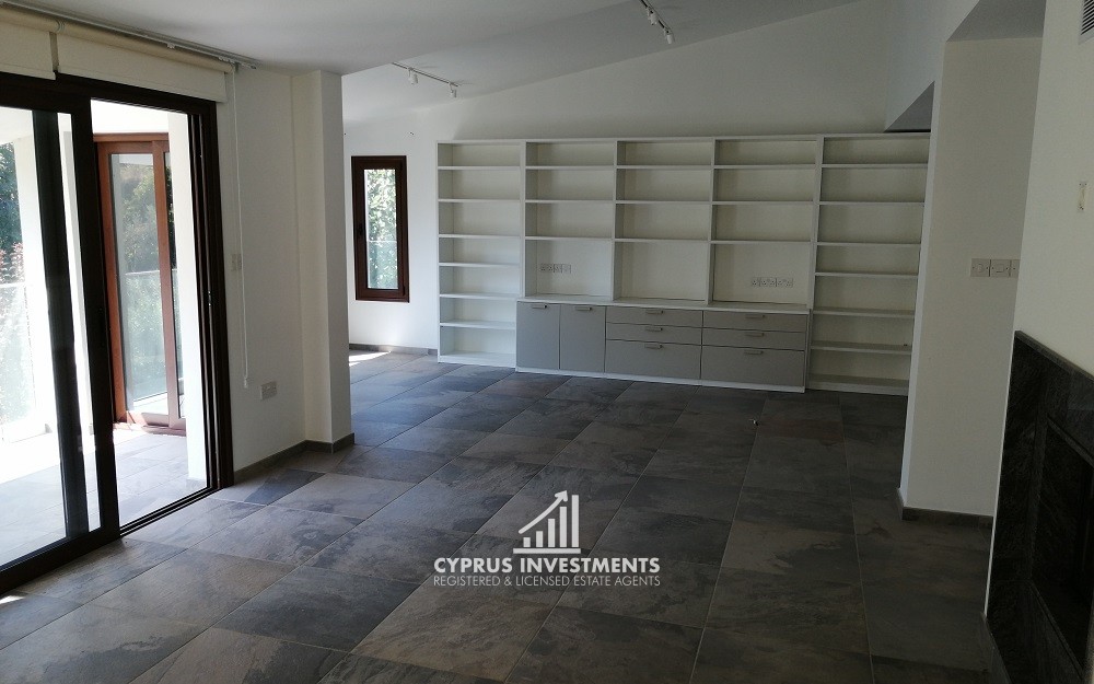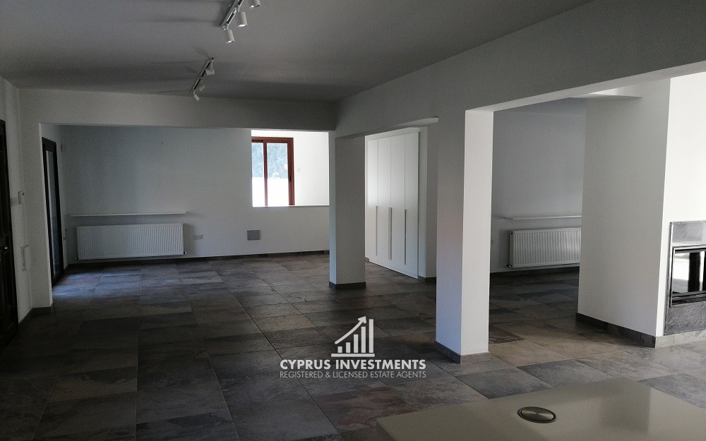 - A three-bedroom house on the first lower floor of c. 226sqm. It consists of an open plan living/dining room, a sitting room, a kitchen, three bedrooms (one being en-suite) and a bathroom. It has double-glazed windows, provisions for split units, central heating and a fireplace. Externally there is an auxiliary building (service room) c. 60sqm that consists of an ensuite bedroom. An elevator provides access to the house.
