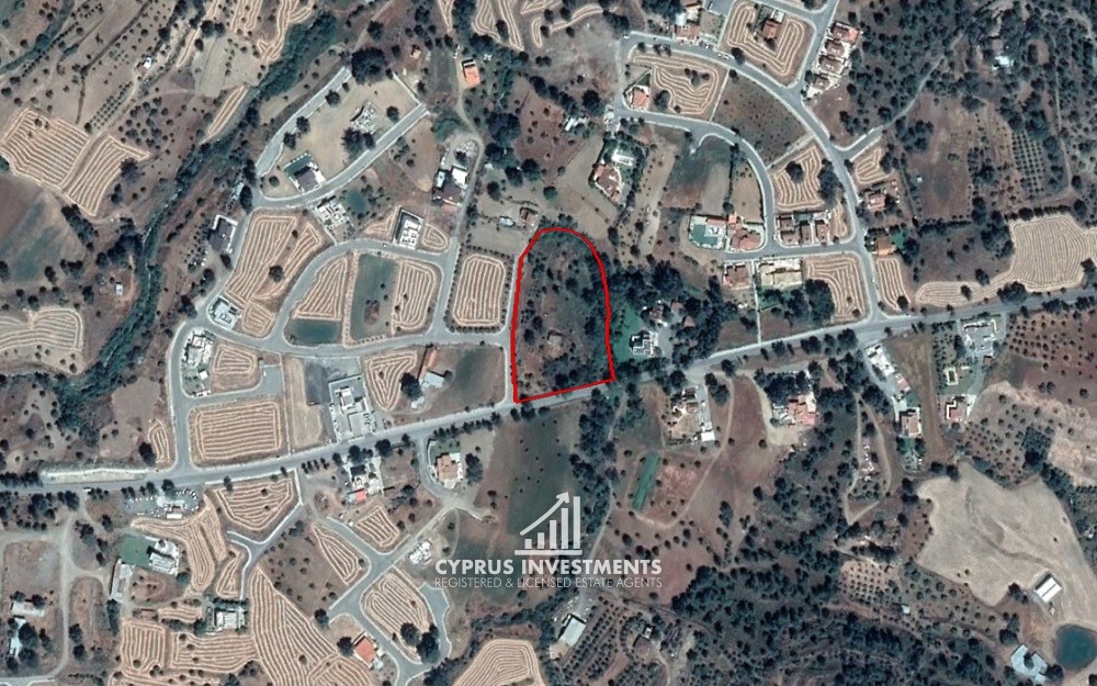 The property has an area of 10,130sqm and has an irregular shape with a slightly sloping surface. It benefits from a road frontage of 85m along the Lythrodontas - Mathiatis road on its south border and 120m along its west border.
