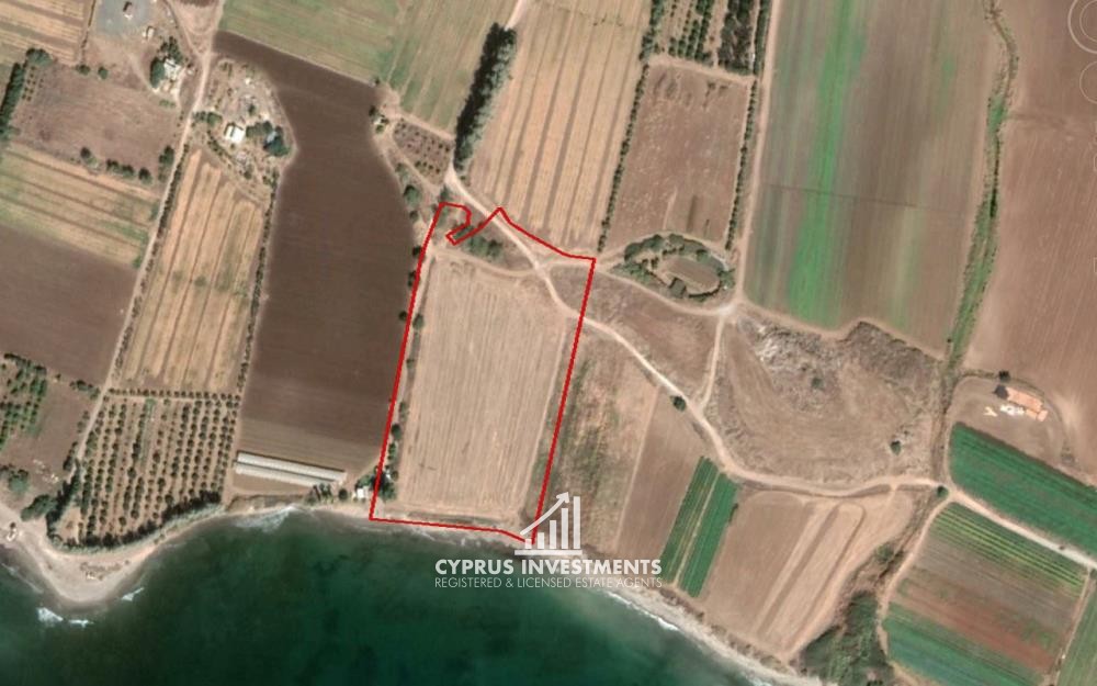 The property has an area of 24,081sqm and benefits from c.117m sea frontage on its south border. It has a rather regular shape and a smooth flat surface and offers nice sea view. Part of the property (c. 5,700sqm) falls within the beach protection zone while another part of the property falls within Paphos Airport Public Safety Zone, which only permits limited uses. The property is landlocked.
