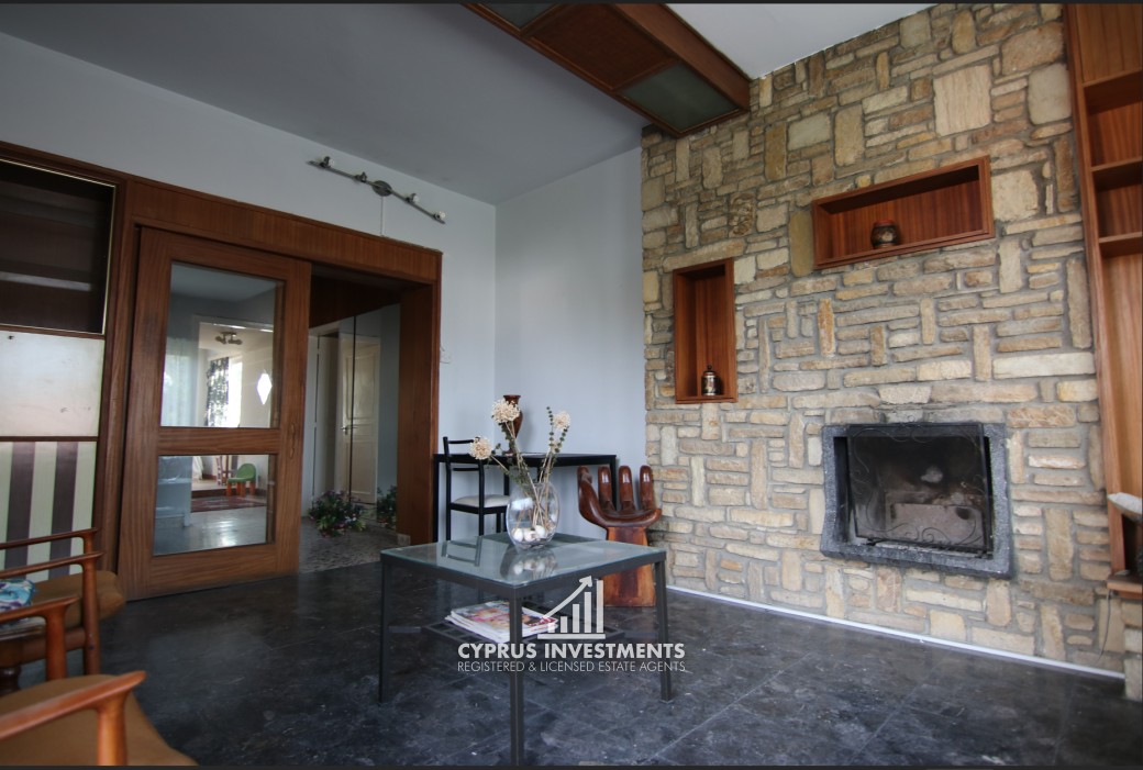 House in Agios Andreas for Rent, the house consists of two living areas with a fireplace, a separated fully equipped kitcken, three bedrooms and two bathrooms, and a lovely uncovered veranda.